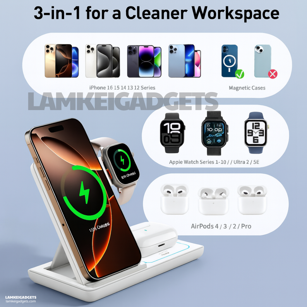 3-in-1 Wireless Charging Dock™ - Fast Charge, Clean Desk, Smart LED